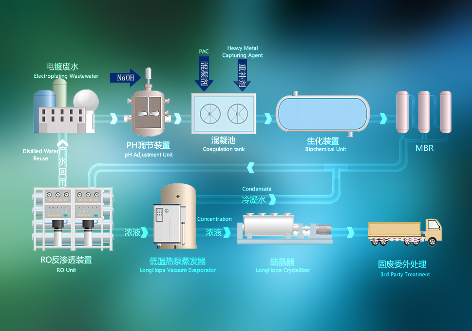 本公司研發的熱泵驅動<無熱源>蒸發器可顯著減少工業廢液處置費用,可獲取85-95%的蒸餾液回收再利用,小部分的濃縮液(約占原液的5-15%)富集了鹽分或重金屬必須另外處置。在材料表面處理行業
